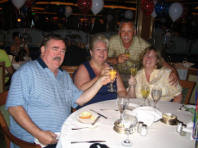 This picture of Christina and I was taken on the last night of our cruise the other folks in the picture are Kathleen and Bryan from Tempe Az. we had supper with them all but one night and we enjoyed every night talking about that days adventures with them . Thanks to Kathleen for sending up the pictures and were already looking for our next cruise ,never thought I would say this but that had to be one of the best vacations I have ever taken, just make sure you workout at the gym while your there or you will come off the boat weighing 20lbs more then you got on